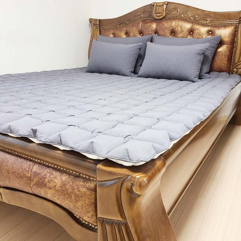 목화솜 돌침대 흙침대 침대 두꺼운 누빔 토퍼 슈퍼싱글 퀸 킹사이즈, 진차콜